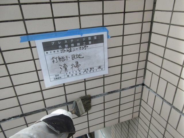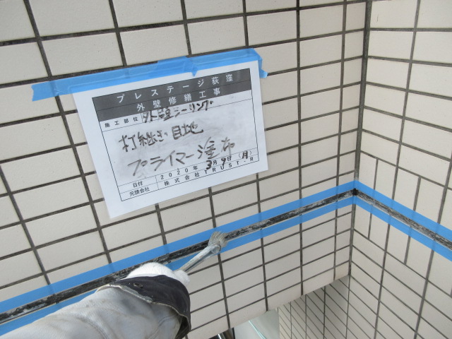 シーリング材を目地に接着するプライマーを塗布しますよ~♪