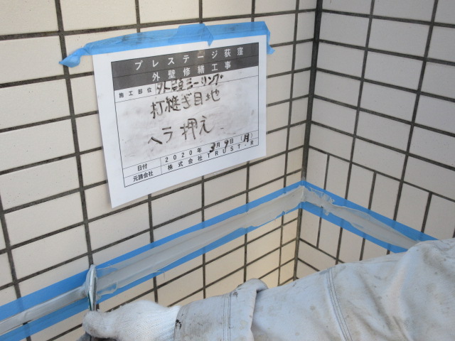 綺麗に清掃した後は、余分な場所に薬剤が付着しないようにマスキングテープで養生をします。